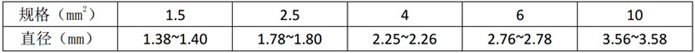 很多廠商用小直徑電線偽裝成標(biāo)準(zhǔn)電線,這其中的差距用肉眼是看不出來(lái)的,只有通過(guò)游標(biāo)卡尺才能測(cè)量比較。下表是BV硬線常用尺寸的標(biāo)準(zhǔn)直徑。