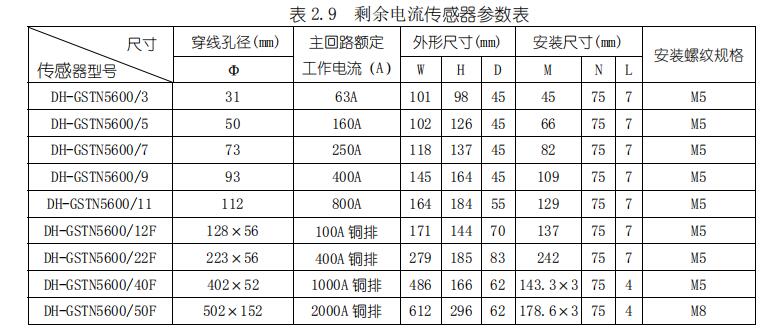 工作電流 穿線孔徑(mm) 說(shuō)明