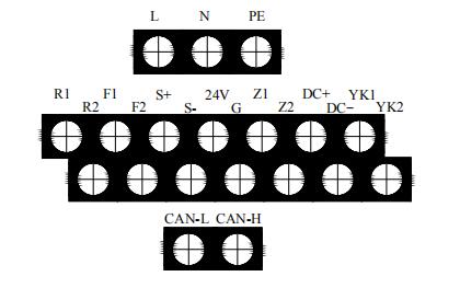 S+、S-:聲光驅動輸出端子,接非編碼聲光警報器;有火警動作時啟動輸出DC24V信號。