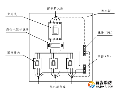 5) 含雙電源切換開關的配電箱內的剩余電流式電氣火災監控探測器的互感器應置于雙電源切換開關出線側,如圖 8.