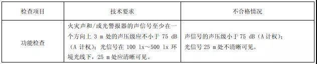 確認火災聲和/或光警報器按制造商規定的供電方式供電,使其發出火災聲和/或光警報信號,在其3m水平處用聲級計(A計權)測量其聲壓級,在25m處觀察其光信號。
