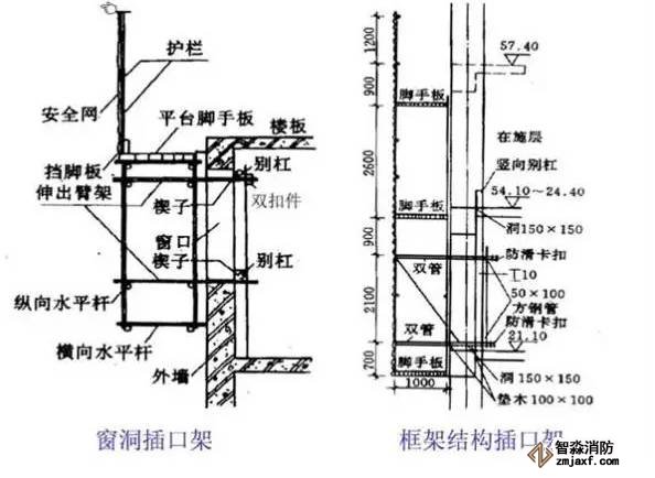 ⑷、操作層應(yīng)滿鋪竹笆,不得留有空洞。必須留空洞者,應(yīng)設(shè)圍欄保護。