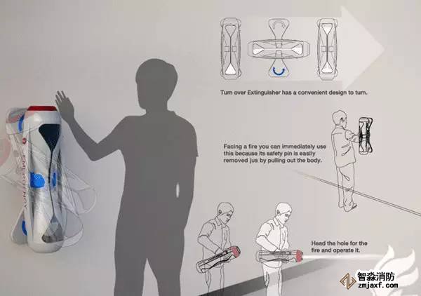 滅火器無(wú)論是在家庭還是在公共場(chǎng)所都是必不可少的物品,由于使用幾率不大,所以很少有人會(huì)注意到它。說(shuō)實(shí)話,很多人見到這個(gè)東西都會(huì)緊張,怕操作錯(cuò)誤,而且現(xiàn)在的滅火器看起來(lái)確實(shí)不那么易懂。最重要的是,打開滅火器的那幾秒鐘很可能意味著生與死。那么來(lái)看看設(shè)計(jì)師們是怎么來(lái)創(chuàng)新它的吧。