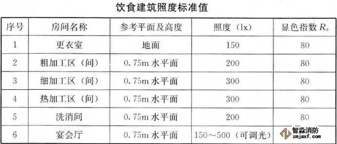 3、飲食建筑各類房間照度的標準值應符合下表的規定。