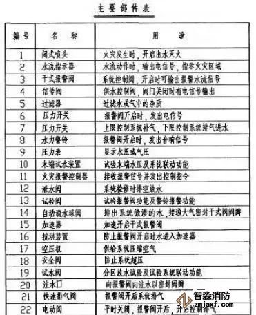 預作用系統在準工作狀態時配水管道內不充水,由火災自動報警器自動開啟預作用閥后,轉換為濕式系統,預作用系統由閉式噴頭、預作用閥組、充氣設備(不是必須有)、水流報警裝置、供水設施及供水配水管道等組成。