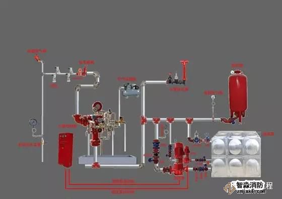 保護區域出現火警時,探測系統首發動作,打開預作用雨淋閥以及系統中用于排氣的電磁閥(出口接排氣閥),此時系統開始充水并排氣,從而轉變為濕式系統, 如果水勢繼續發展,閉式噴頭開啟噴水,進行滅火。這樣就克服了雨淋系統會因探測系統誤動作而導致誤噴的缺陷。如果系統中任一噴頭玻璃球意外破碎,則會從該 噴頭處噴出氣體,導致系統中氣壓迅速下降,降低監控開關動作,發出報警信號,提醒值班人員出現異常情況,但預作用雨淋閥沒有動作,所以系統不會噴水,從而 克服了濕式系統會因噴頭誤動作所引起誤噴造成水漬的缺陷。
