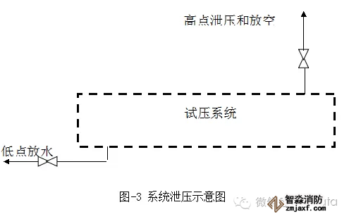 6.5.2管道系統(tǒng)試壓合格后進(jìn)行泄壓排水時(shí),必須先開(kāi)啟管道系統(tǒng)高點(diǎn)的復(fù)位放空閥,在系統(tǒng)無(wú)壓力后,仍開(kāi)高點(diǎn)放空閥,然后打開(kāi)系統(tǒng)最低點(diǎn)的排水閥進(jìn)行系統(tǒng)排水(見(jiàn)圖-3),將系統(tǒng)水排到指定地點(diǎn)。