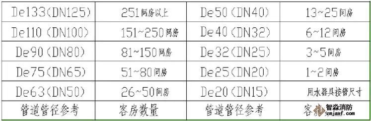4.冷水管材質采用PPR給水管?!?100間房計算】主水管的管徑在 De90左右以上,干管的管徑:De50-75,支管的管徑:De25-50 。客房衛生間給水管徑要求:不小于PPR-De20的管徑。