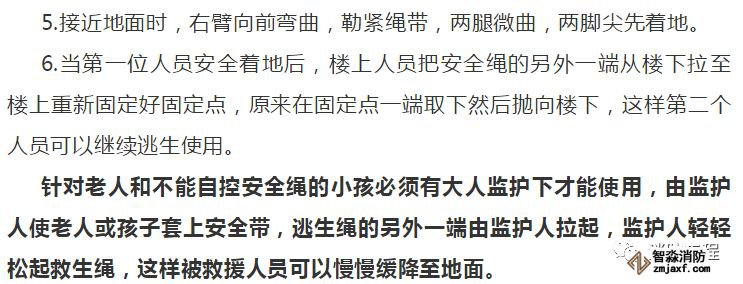 緩降逃生繩是把逃生繩、緩降器、安全帶融為一體,繩子內部為鋼絲,外部為阻燃棉,它可以安全、簡單、方便、快捷地使逃生人員安全降落到地面,并且可以快捷、多次重復使用逃生。