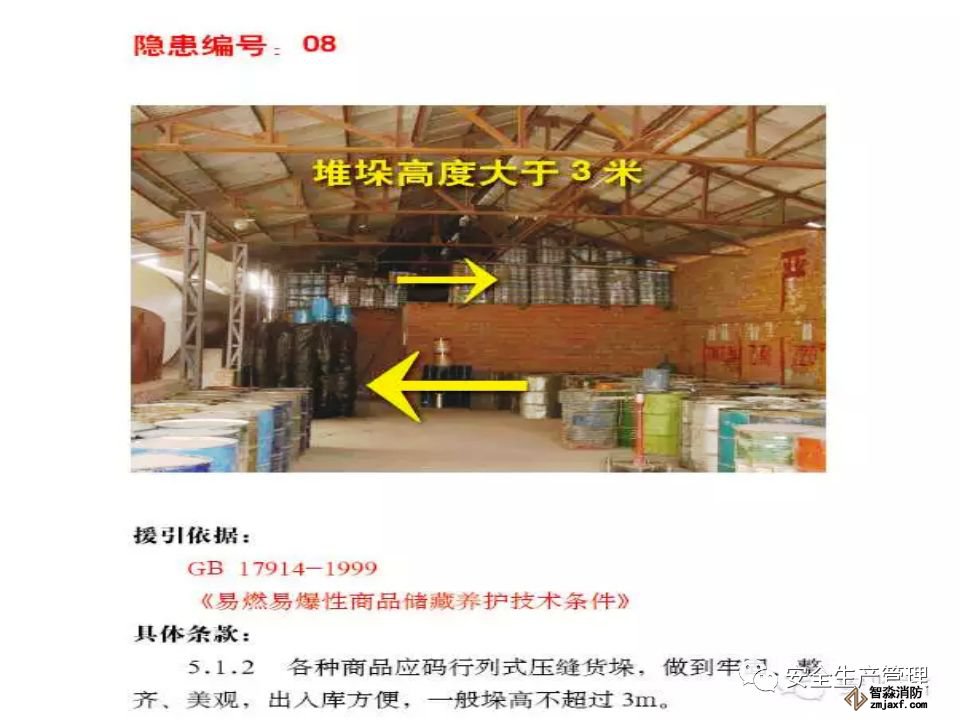 企業(yè)現(xiàn)場(chǎng)管理極其混亂,槽車運(yùn)輸苯乙烯到廠后自行分裝到塑料大桶(1 噸/桶),在沒有控溫措施的甲類倉庫超量堆垛存放,使用塑料大桶盛裝苯乙烯在包裝物材質(zhì)、容量、儲(chǔ)存條件等均嚴(yán)重違反《工業(yè)用苯乙烯》(GB/T3915-2011)標(biāo)準(zhǔn)規(guī)定。生產(chǎn)車間內(nèi)大量存放原料及產(chǎn)品,倉庫超量儲(chǔ)存問題突出。
