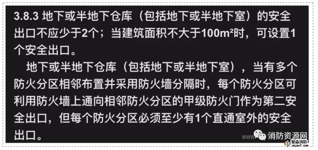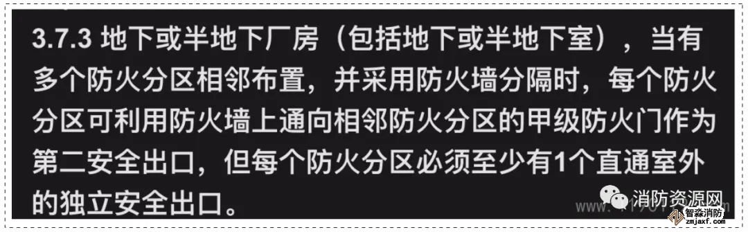 2、設置于地下或半地下(包括地下或半地下室)的廠房和倉庫,相鄰布置的防火分區,可以利用防火墻上通向相鄰防火分區的甲級防火門,作為第二安全出口,詳見《建規》3.7.3、3.8.3: