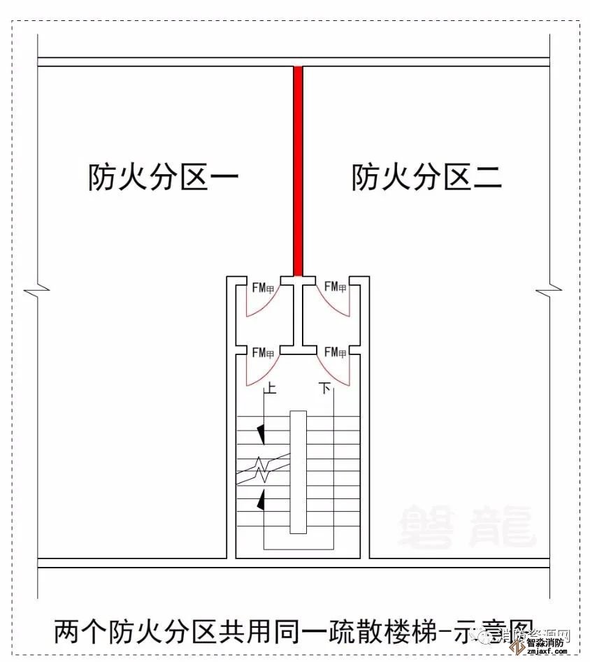 3.3 三個及以上防火分區不得共用同一部疏散樓梯。兩個防火分區共用疏散樓梯時應分別設置前室,并應符合防煙樓梯間的設置要求,開向前室的門應為甲級防火門。