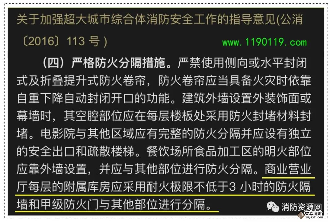 除小型便利商店或超市外,商店建筑的庫房,不應參照上述民用建筑的附屬庫房要求設置,詳見文末疑難探討。
