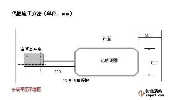 線圈埋設首先要用切路機在路面上切出槽來。在四個角上進行45度倒角,防止尖角破壞線圈電纜。切槽寬度一般為4到8毫米,深度30到50毫米。同時還要為線圈引線切一條通到路邊的槽。但要注意:切槽內必須清潔無水或其它液體滲入。繞線圈時必須將線圈拉直,但不要繃得太緊并緊貼槽底。將線圈繞好后,將雙絞好的輸出引線通過引出線槽引出。