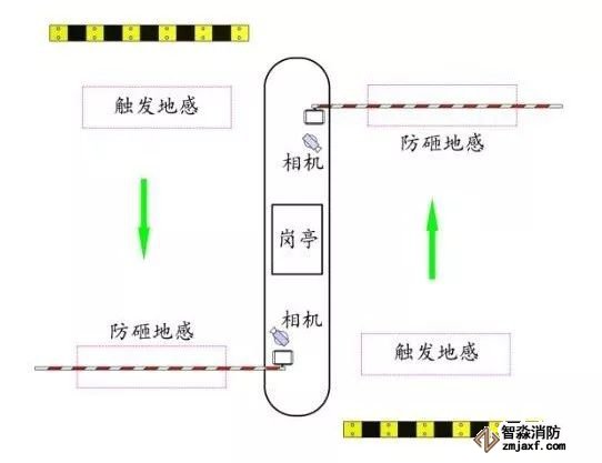 停車場車牌識別系統安裝在地庫坡道上面水平路面上,出口的停車場車牌識別系統安裝在地庫坡道下面的水平地面上。能夠防止當一體機無法識別車牌,造成道閘不能抬桿時,車輛只能停在地庫坡道上的疑問。