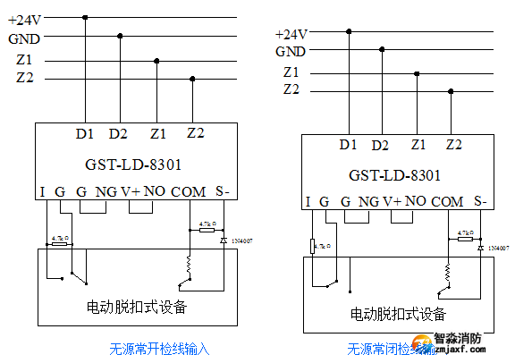 Z1、Z2:接火災報警控制器信號二總線,無極性