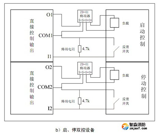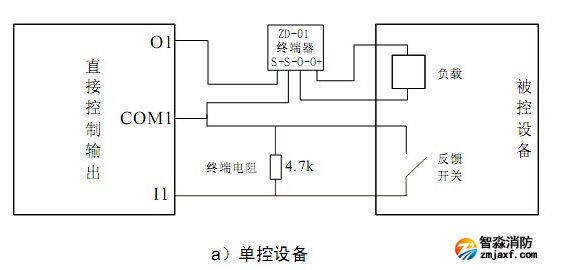 GST-LD-KZ014直接控制輸出與外部被控設備連接(GST-LD-KZ014控制盤與ZD-01終端器配合使用)如圖所示: