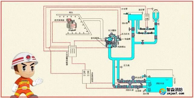 預作用系統與濕式系統、干式系統的不同之處,在于系統采用雨淋閥,并配套設置火災自動報警系統。