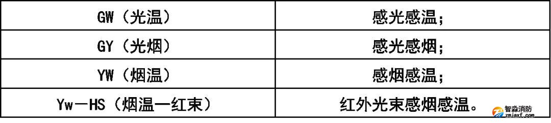 感煙火災探測器、感光大災探測器、 可燃氣體探測器傳感器特征表示法: