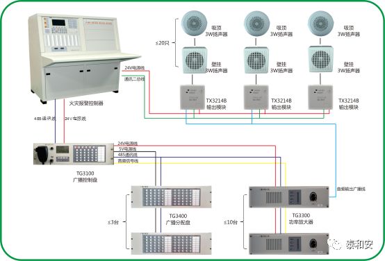 5. 分區(qū)可擴展,最大支持擴展3個TG3400廣播分配盤,每個廣播分配盤60區(qū);