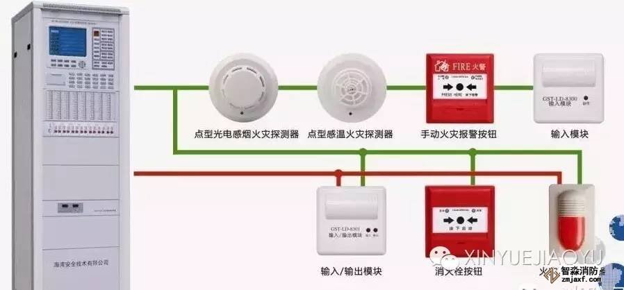 火災(zāi)自動(dòng)報(bào)警系統(tǒng)通常由觸發(fā)裝置如火災(zāi)探測(cè)器、報(bào)警裝置如火災(zāi)報(bào)警控制器、警報(bào)裝置如聲光報(bào)警器、聯(lián)動(dòng)控制裝置如總線(xiàn)控制盤(pán)與控制模塊、電源等組成。