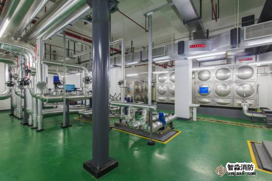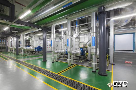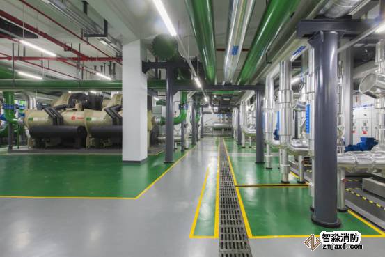 制冷機房布局合理,設(shè)備運行可靠,支架安全、可靠、大氣。