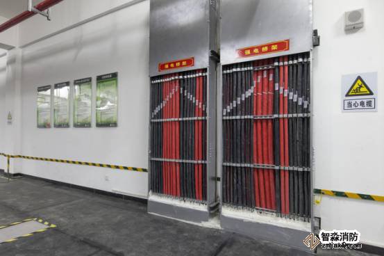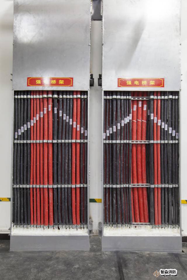 豎向橋架內(nèi)電纜排布有序,標(biāo)識清晰,防火封堵到位。