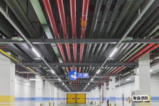 車庫管線排布美觀,聯(lián)合支吊架安全可靠,管道居套管中,燈帶線槽平直,噴淋布置間距一致,標(biāo)識清晰。