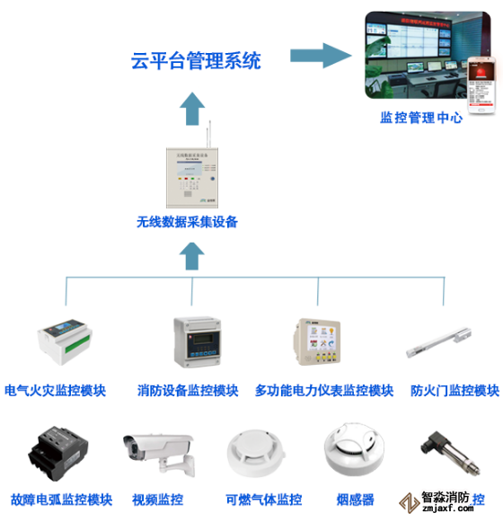 實現消防設施運行及監管的現代化必須構建有效的的消防監控物聯網系統,采用消防自動報警系統已有的各種感知設備、視頻采集設備等,將感知采集到的大量現場信息,借助消防物聯網傳輸到消防指揮中心,將過去封閉、功能單一的火災報警系統改造為網格化、智能化的跨區域火災報警綜合管理平臺。