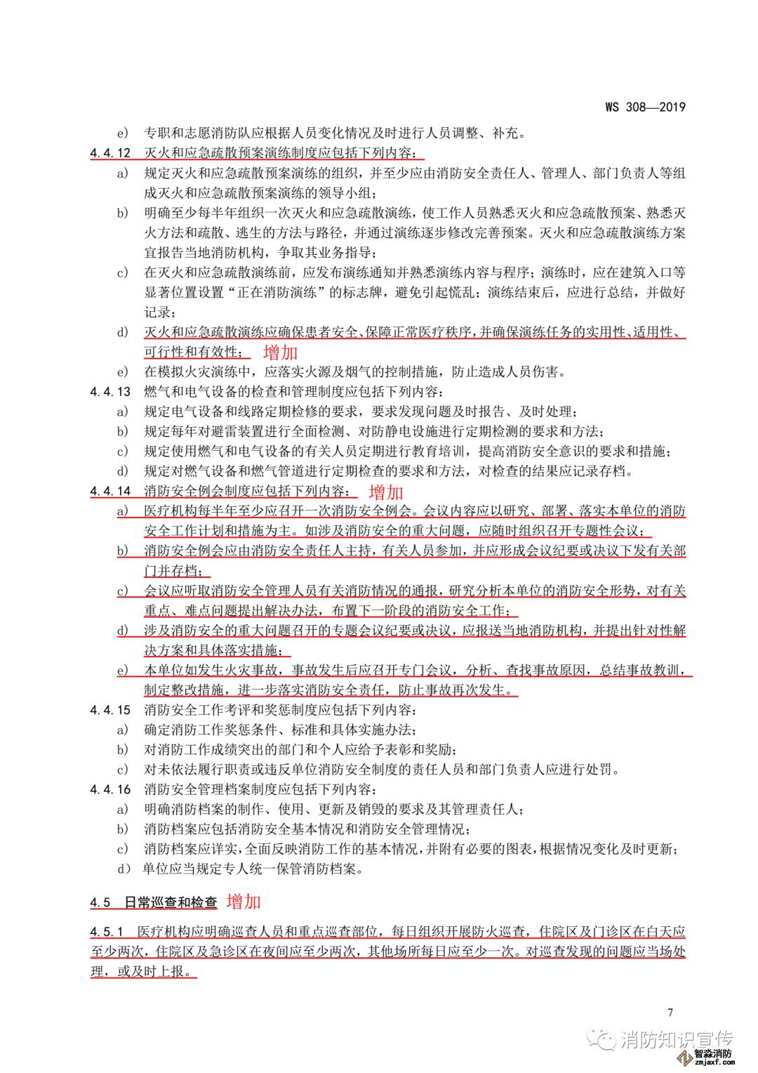 ——增加了屬于高危單位的醫療機構開展消防安全評估的要求(見4.1.14);
