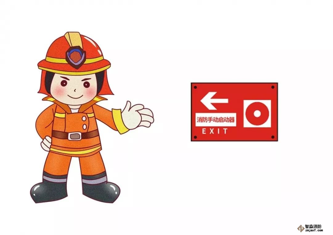 手動火災報警按鈕和固定滅火系統的手動啟動器等裝置附近必須設置“消防手動啟動器”標志。萬一發生災情,大家可立即尋找消防手動啟動器。