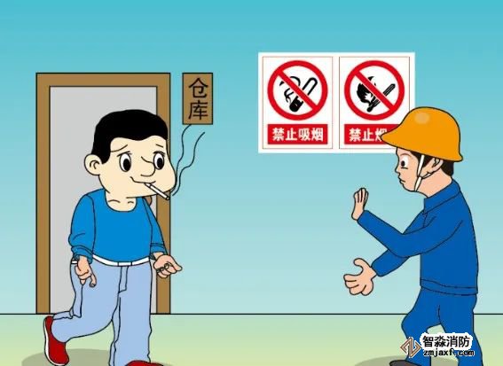 8. 生產(chǎn)車間、原料及成品庫(kù)房禁止攜帶火種進(jìn)入,禁止動(dòng)用明火、禁止吸煙,設(shè)置醒目的嚴(yán)禁煙火警示牌。