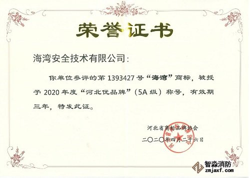 海灣被河北省品牌商標協會授予“河北優品牌”(5A級)稱號