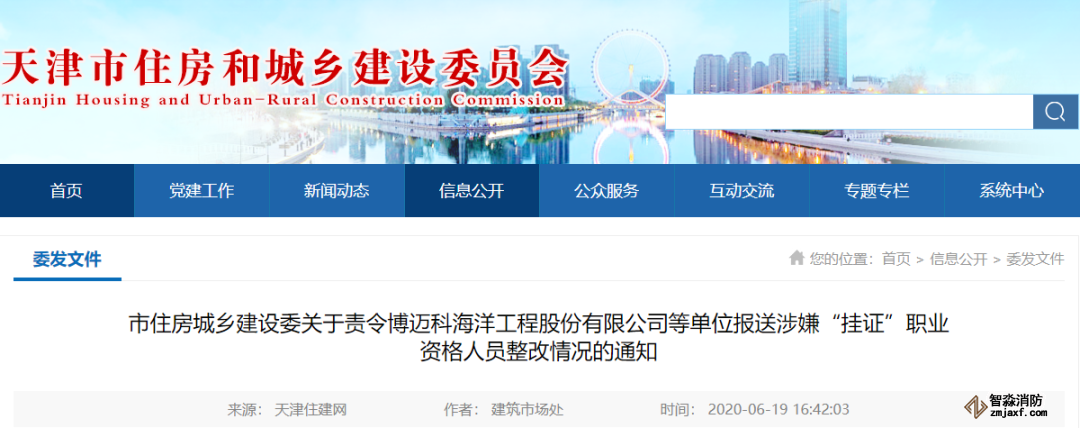 市住房城鄉(xiāng)建設(shè)委關(guān)于責(zé)令博邁科海洋工程股份有限公司等單位報送涉嫌“掛證”職業(yè)資格人員整改情況的通知