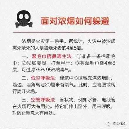 ☑火場(chǎng)逃生自救有什么訣竅?面對(duì)濃煙如何躲避?