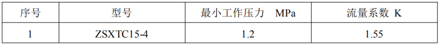 表1-3分區控制閥主要技術參數