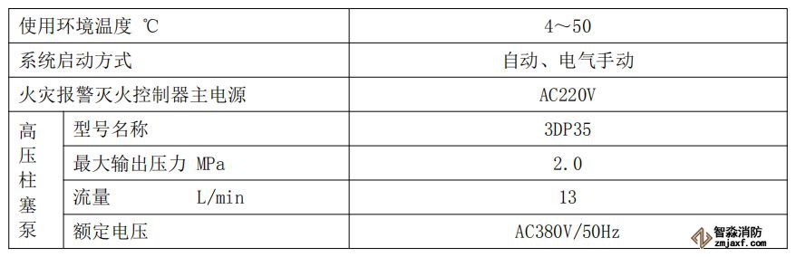 表1-2泵式細水霧自動滅火系統主要參數
