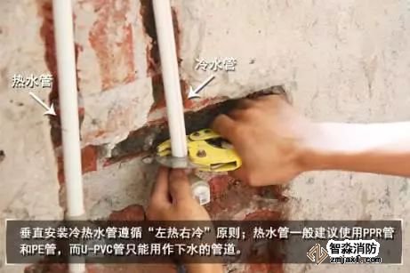 冷熱水管道的安裝遵循“上熱下冷,左熱右冷”的規則,上下安裝的水管還必須要注意兩管之間的平行。如果水管靠近煤氣管道,兩管距離必須大于50mm。入墻的冷熱水管與墻皮之間的距離須為1cm。