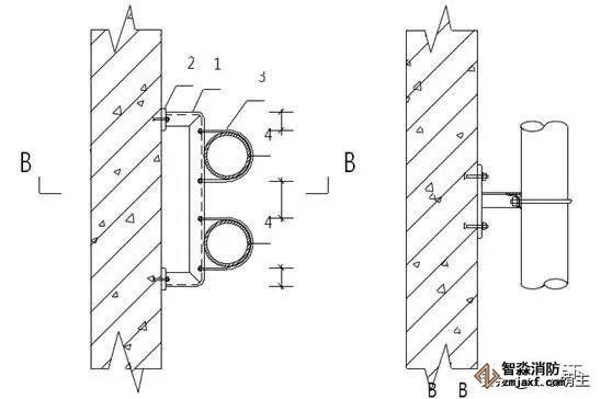 1.角鋼 2.連接板(6mm) 3.管碼 4.管道