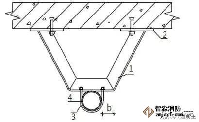 1.支架橫擔(dān) 2.鍍鋅螺桿 3.管碼 4.管道 5.頂爆螺栓 6.緊固螺栓